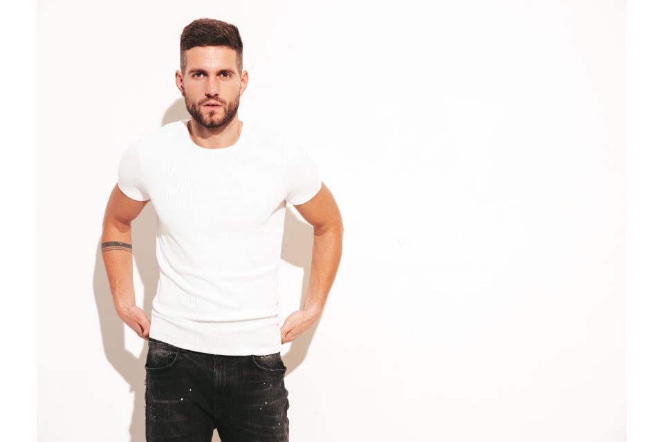 T-SHIRT 100% cotone jersey, girocollo manica corta, colletto in costina misto spandex da 1,5 cm con cucitura ribattuta, struttura tubolare. 150 g/mq.